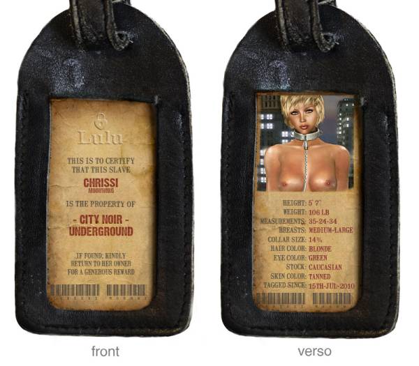 The sub wearing her LULU Signature Collar is tagged. Literally.